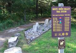 Hiking and mountain biking. Elevation gain of 394 ft. Consists of 4 different trails totaling 11.75 miles. Unpaved.